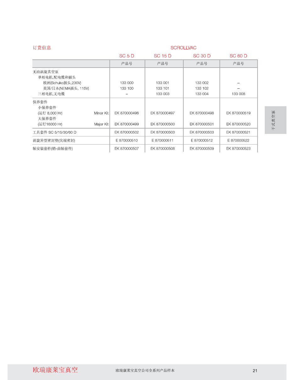 德國萊寶無油渦旋真空泵SC60D維護周期,為了使泵性能保持不變,在運行了一定的小時數(shù)后,需要進行標準保養(yǎng),為此,提供了完整的保養(yǎng)套件。...